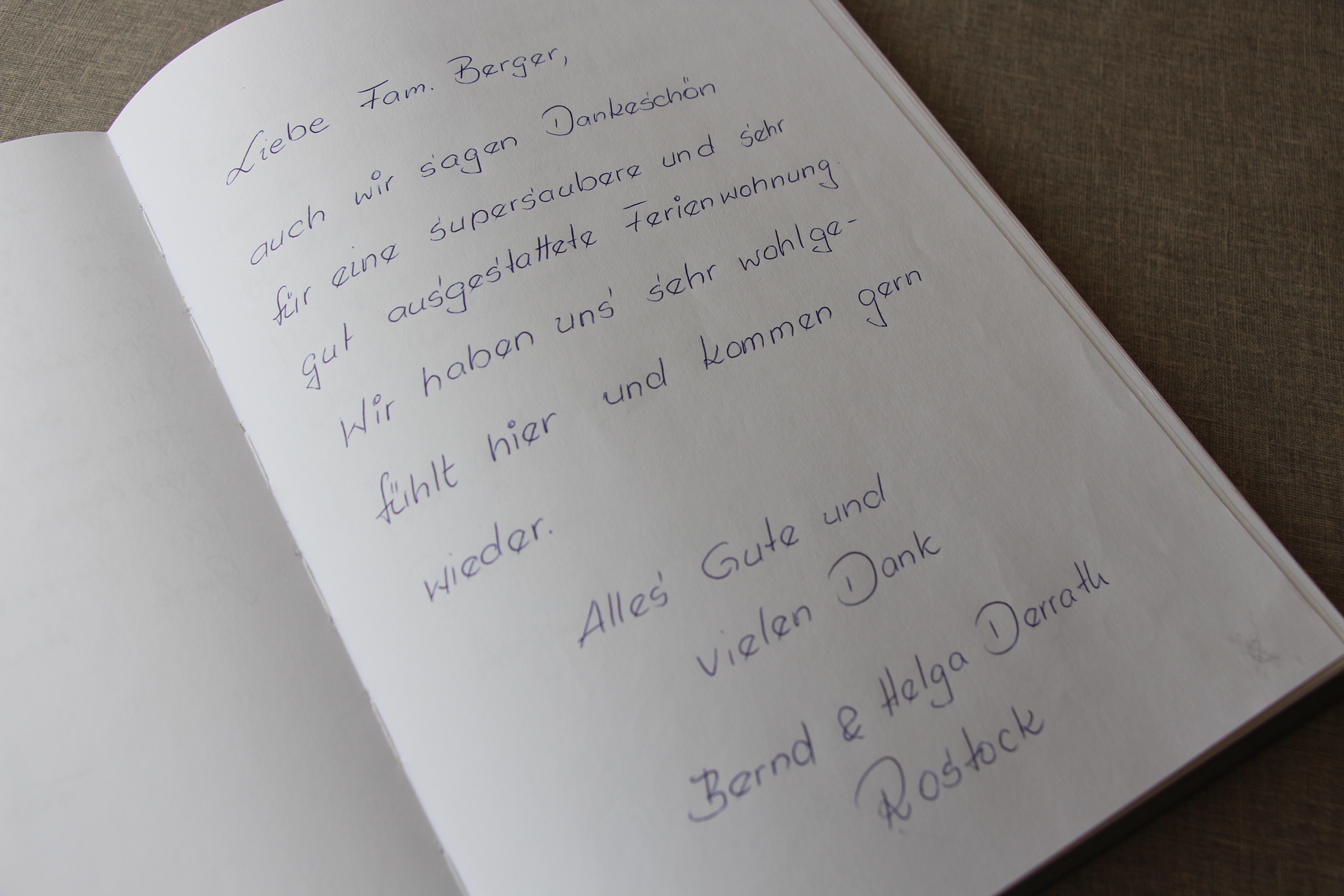 „Liebe Familie Berger, wir bedanken uns sehr herzlich dafür, dass wir Ihre schöne Ferienwohnung bewohnen durften.“